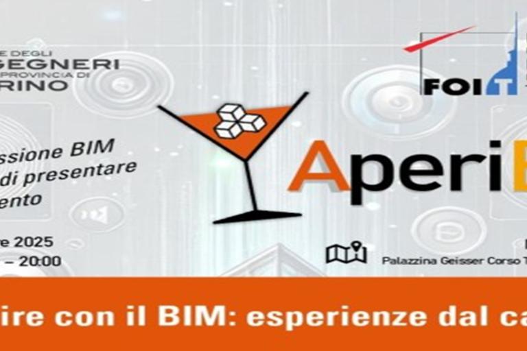 22 Ottobre 2025 Evento AperiBIM – Ordine Ingegneri di Torino - 29 ottobre 2025 ore 17.00 Nuovo evento AperiBIM organizzato dall'Ordine Ingegneri di Torino