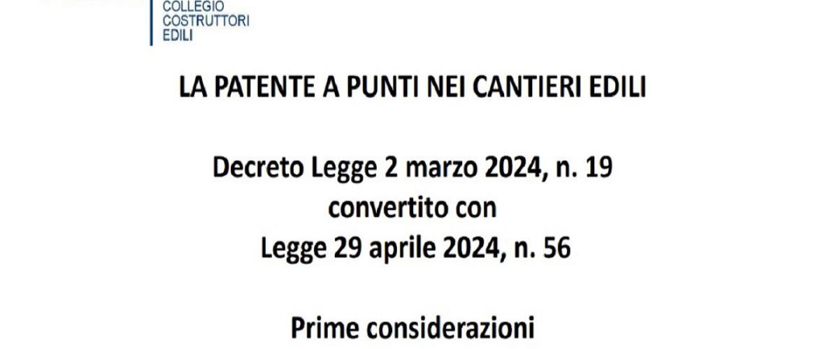 Materiali del webinar ANCE Torino "Patente a crediti e appalti illeciti: indicazioni operative e attività dell'Ispettorato del Lavoro"