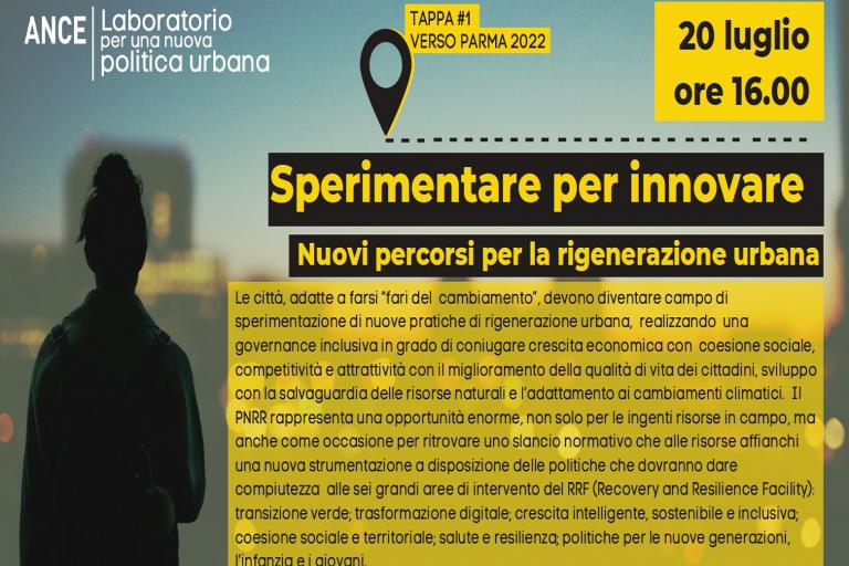 16 Luglio 2021 Webinar ANCE “Sperimentare per innovare - Nuovi percorsi per la rigenerazione urbana” – martedì 20 luglio 2021, ore 16.00 Prima tappa del progetto ANCE per delineare la strumentazione urbanistica, fiscale, finanziaria e sociale indispensabile all’avvio di interventi di rigenerazione urbana